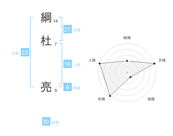 綱杜 亮さんの外格は23画の5点!