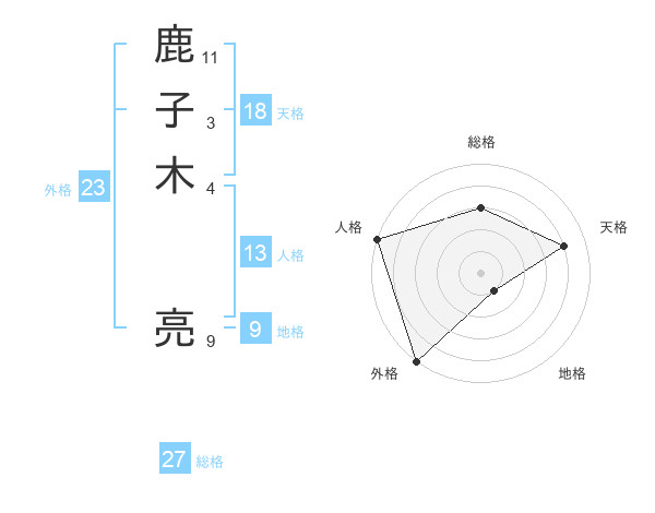 鹿子木 亮さんを姓名の画数から五運を鑑定