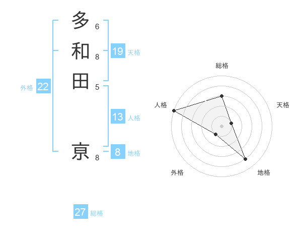 多和田 亰さんの総格は27画の3点!
