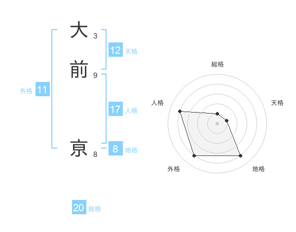 大前 亰さんの総格は20画の1点!