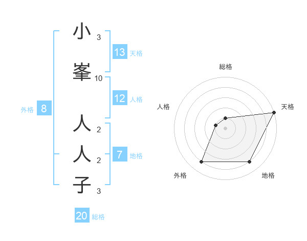 小峯 人人子さんを姓名の画数から五運を鑑定