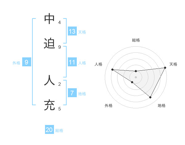 中迫 人充さんの総格は20画の1点!