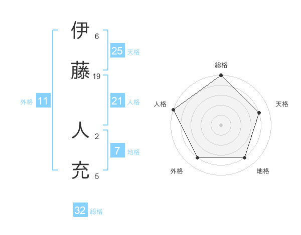 伊藤 人充さんの総格は32画の5点!