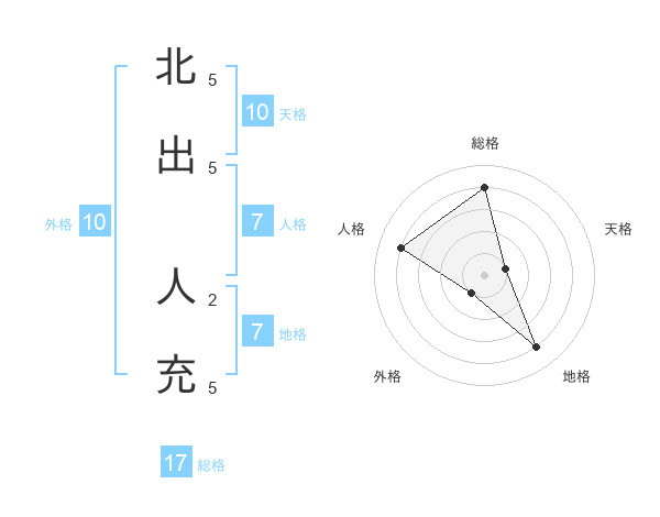 北出 人充さんの総格は17画の4点!