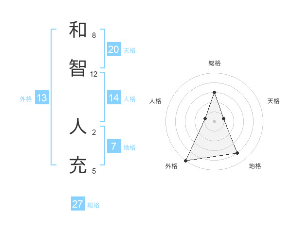 和智 人充さんの総格は27画の3点!