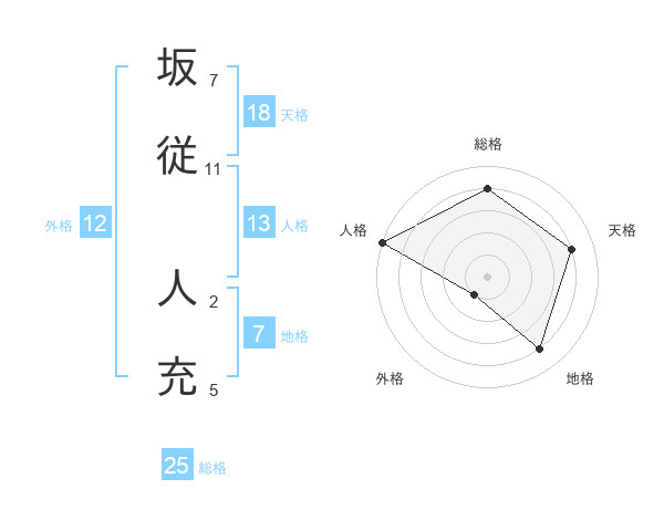 坂従 人充さんの総格は25画の4点!