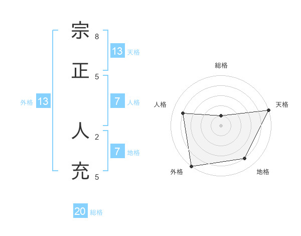 宗正 人充さんの天格は13画の5点!