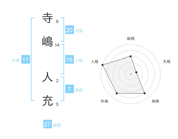 寺嶋 人充さんを姓名の画数から五運を鑑定
