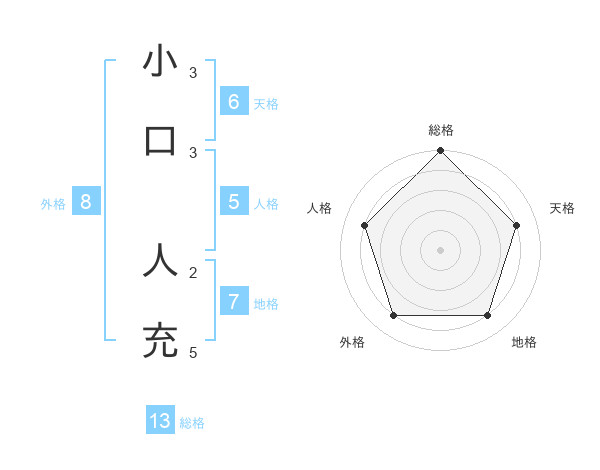 小口 人充さんの総格は13画の5点!