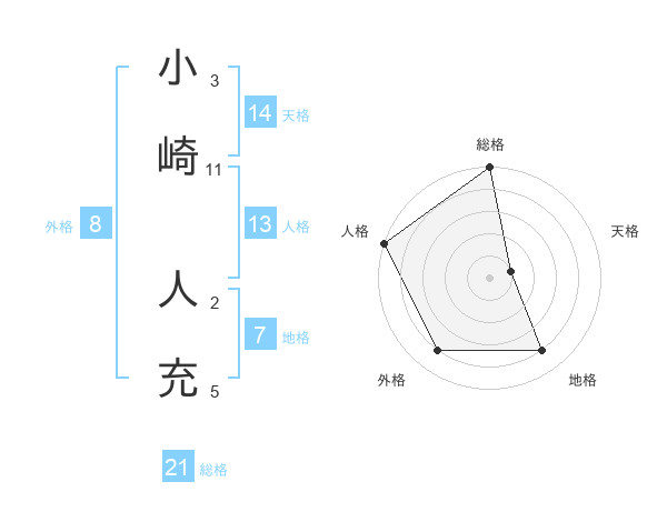 小崎 人充さんの総格は21画の5点!