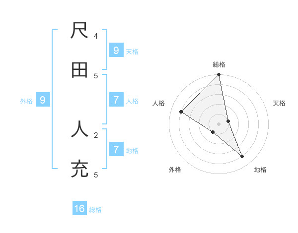 尺田 人充さんの総格は16画の5点!