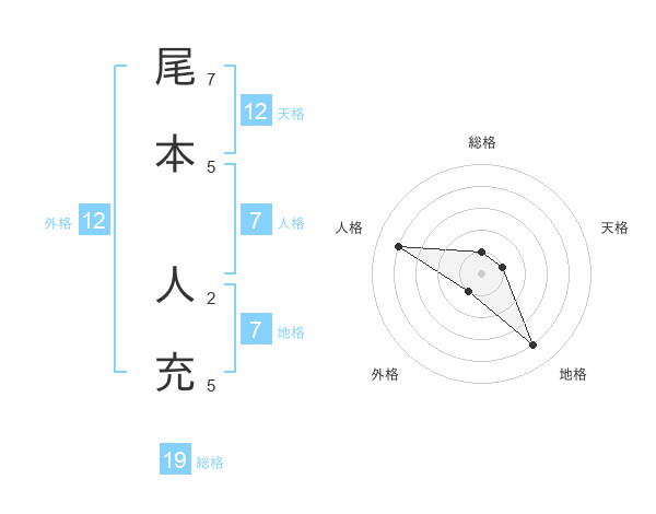 尾本 人充さんの総格は19画の1点!