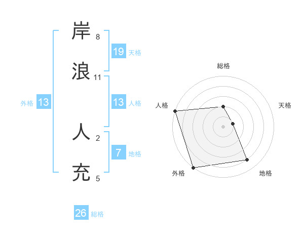 岸浪 人充さんを姓名の画数から五運を鑑定