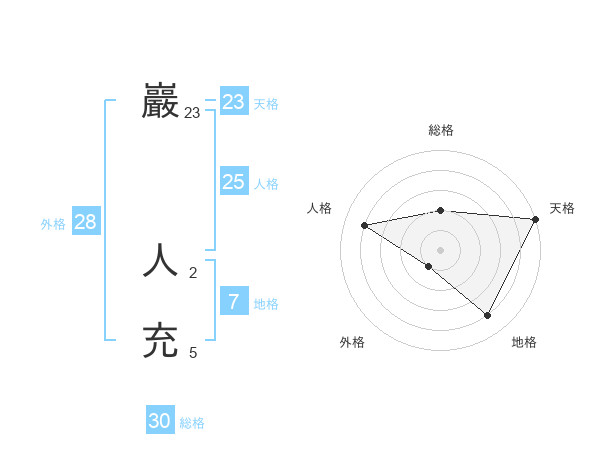 巖 人充さんの総格は30画の2点!