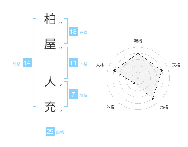 柏屋 人充さんを姓名の画数から五運を鑑定