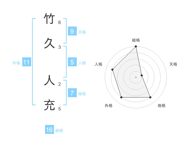 竹久 人充さんの総格は16画の5点!