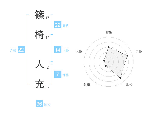 篠椅 人充さんを姓名の画数から五運を鑑定