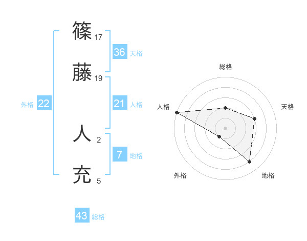 篠藤 人充さんの総格は43画の2点!