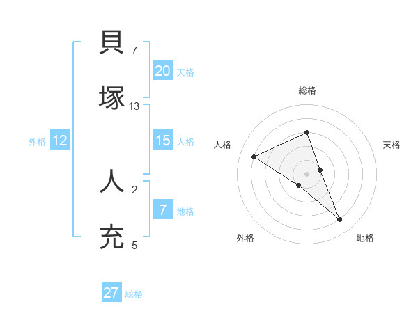 貝塚 人充さんの総格は27画の3点!