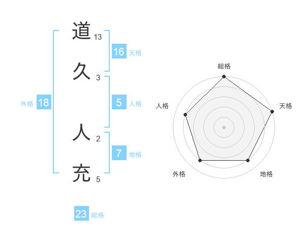 道久 人充さんの総格は23画の5点!