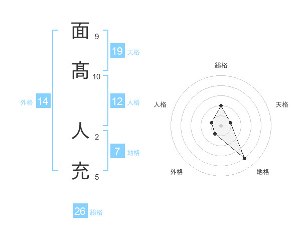面髙 人充さんの総格は26画の2点!