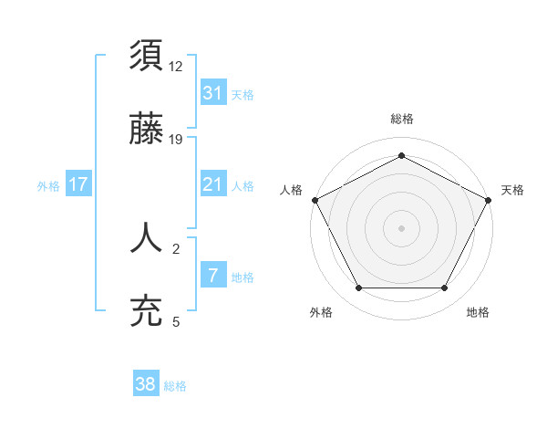 須藤 人充さんの天格は31画の5点!