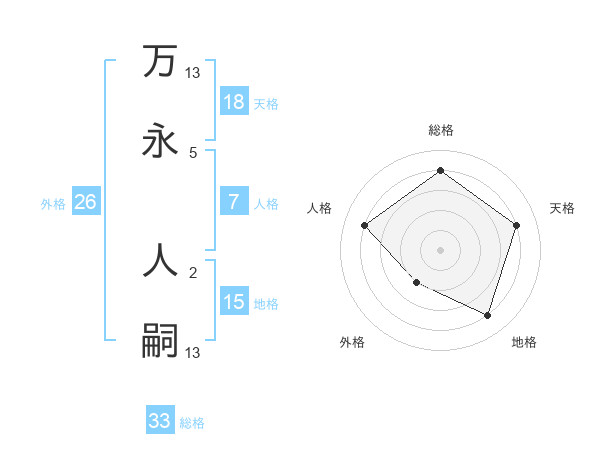 万永 人嗣さんの総格は33画の4点!