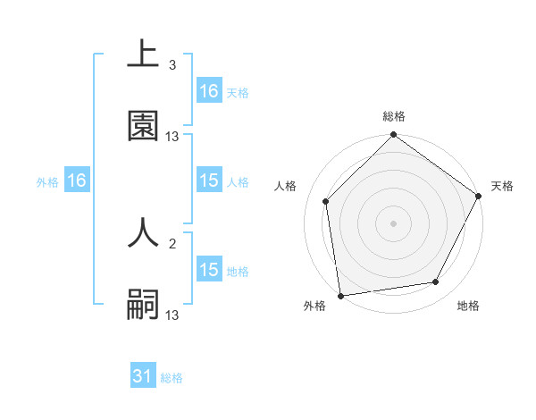 上園 人嗣さんの総格は31画の5点!