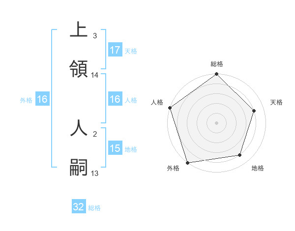 上領 人嗣さんを姓名の画数から五運を鑑定