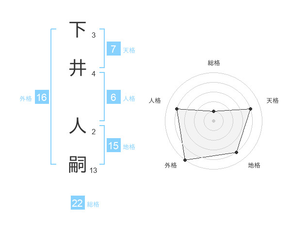 下井 人嗣さんを姓名の画数から五運を鑑定