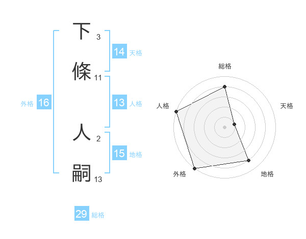 下條 人嗣さんを姓名の画数から五運を鑑定