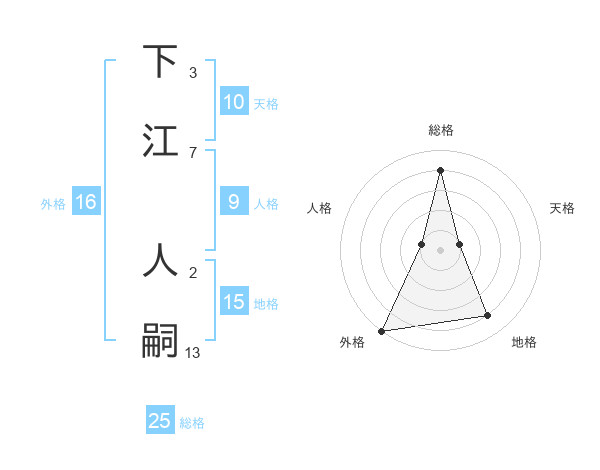 下江 人嗣さんの外格は16画の5点!