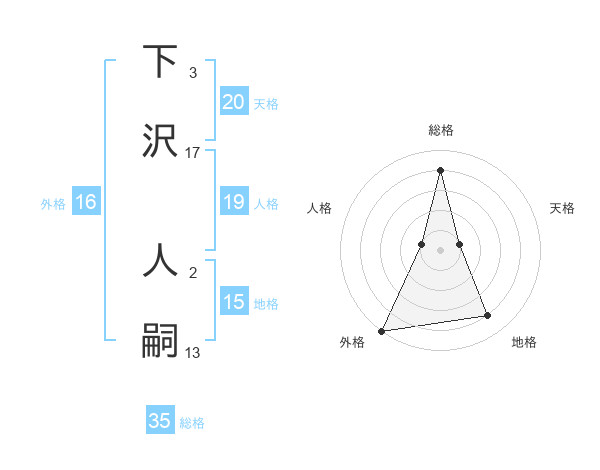下沢 人嗣さんの総格は35画の4点!