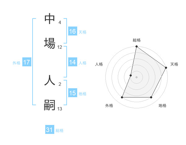 中場 人嗣さんの外格は17画の4点!
