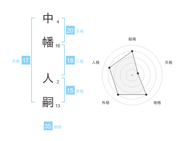 中幡 人嗣さんの総格は35画の4点!