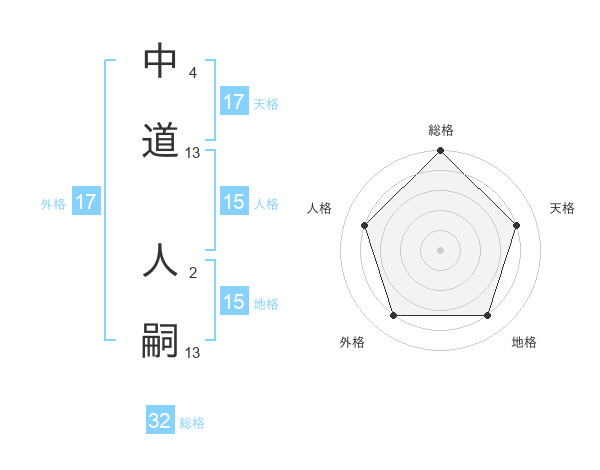 中道 人嗣さんの天格は17画の4点!