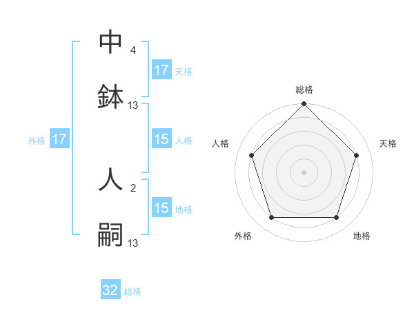 中鉢 人嗣さんの天格は17画の4点!