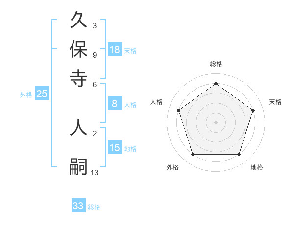久保寺 人嗣さんの総格は33画の4点!