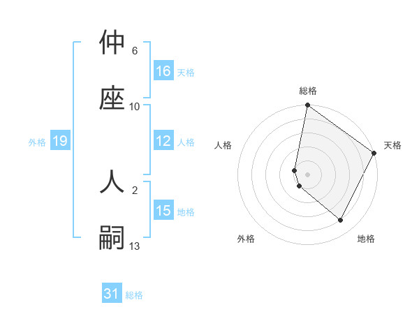 仲座 人嗣さんの天格は16画の5点!