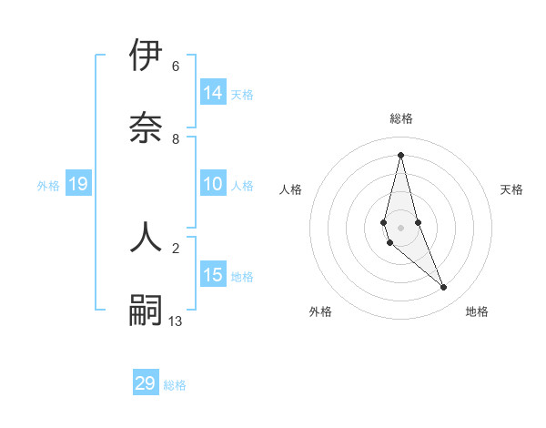 伊奈 人嗣さんを姓名の画数から五運を鑑定