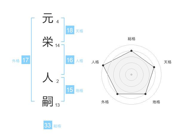 元栄 人嗣さんを姓名の画数から五運を鑑定