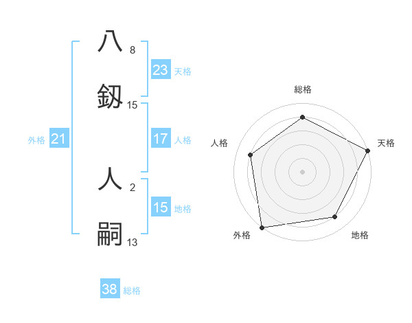 八釼 人嗣さんの総格は38画の4点!