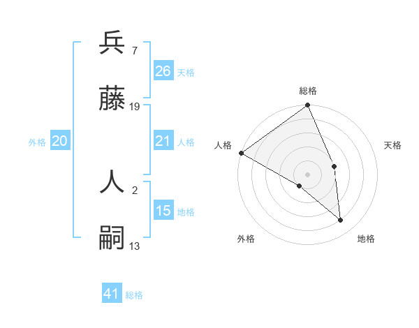 兵藤 人嗣さんの総格は41画の5点!