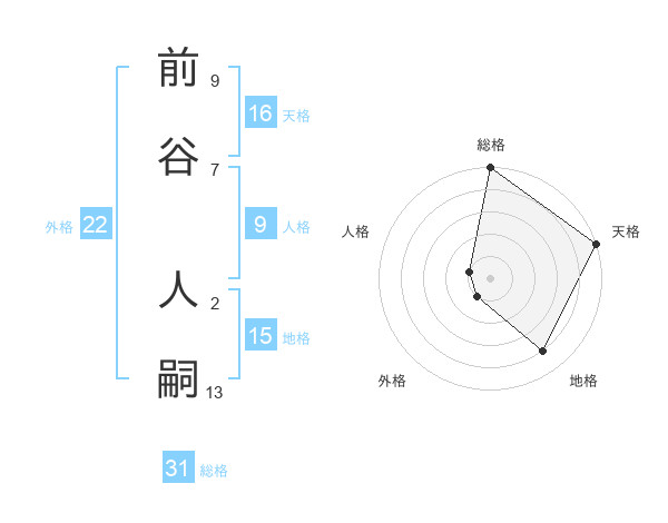 前谷 人嗣さんの天格は16画の5点!