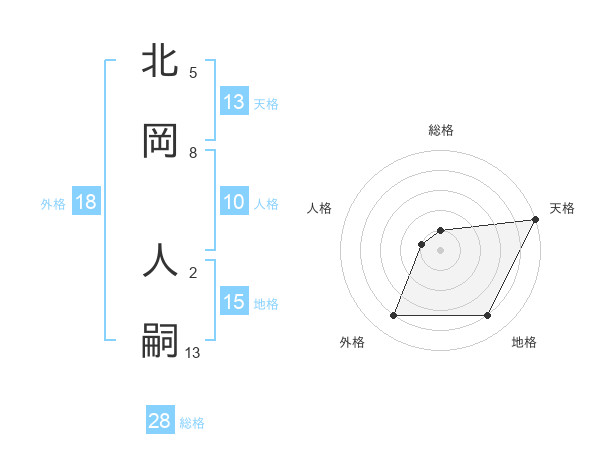 北岡 人嗣さんの天格は13画の5点!