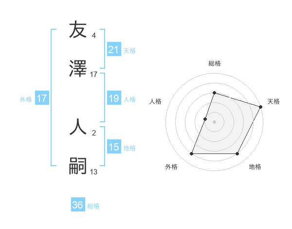 友澤 人嗣さんの天格は21画の5点!