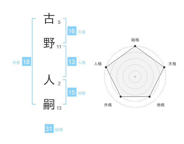 古野 人嗣さんを姓名の画数から五運を鑑定