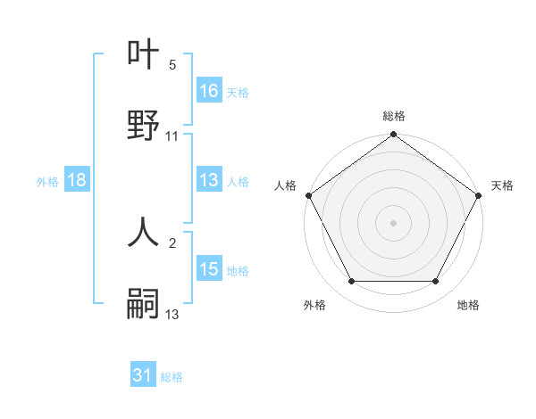 叶野 人嗣さんの総格は31画の5点!