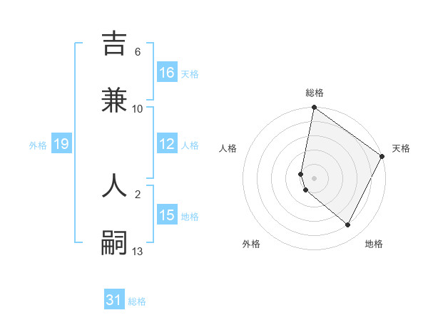 吉兼 人嗣さんの天格は16画の5点!