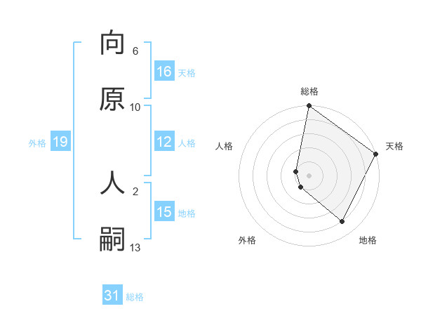 向原 人嗣さんの天格は16画の5点!